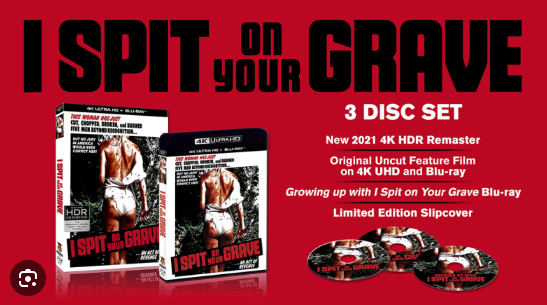 First time boxset, I Spit On Your Grave (1978) 4K scan, I Spit On Your Grave Deja Vu and Growing Up With I Spit On Your Grave together.
