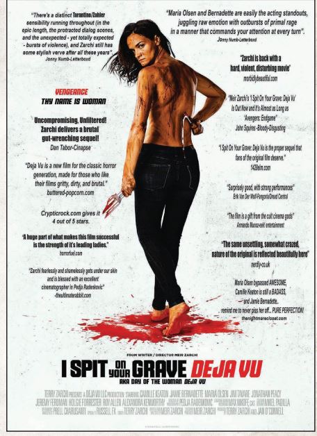 Deja Vu LLC., producing 47 years of cinemas most iconic horror film titles. Based in Los Angeles, Ca. Meir Zarchi and Camille Keaton changed the face of cinema in 1978 and the title spawned five films. Meir Zarch’s 35mm negative print now part of New York Museum of Modern Art’s permanent film archive and artifacts (4K Blurays, DVD’s, Lasers, script poster, photos.)